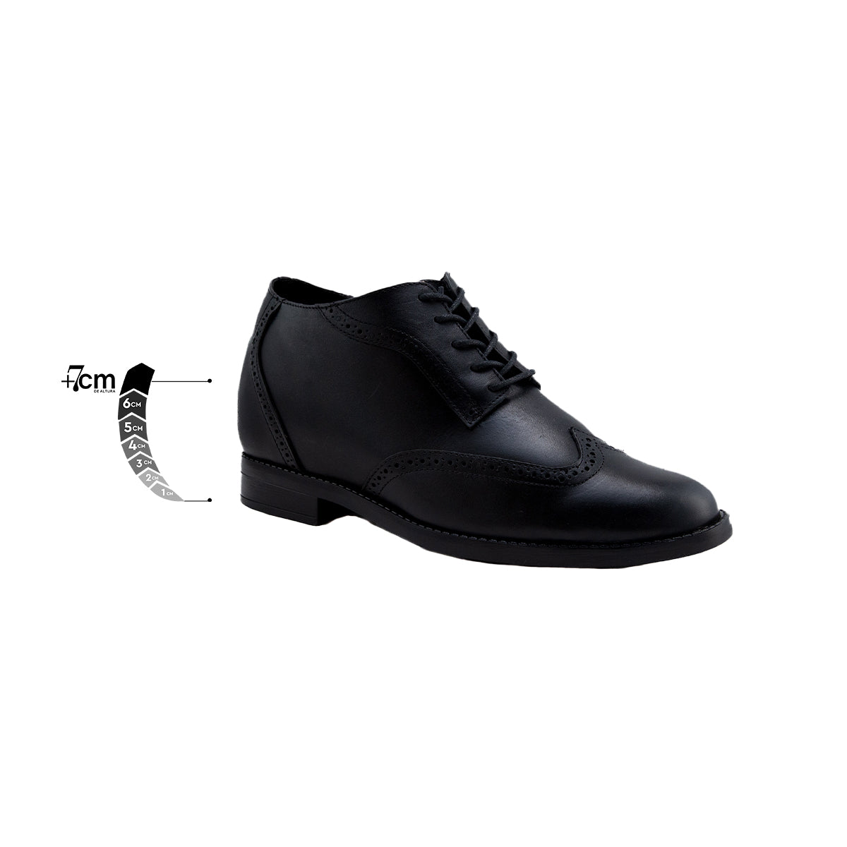 El Zapato Casual Para Hombre Derby Negro +7cm De Altura Manchester combina diseño contemporáneo, confort y un distintivo toque de sofisticación. Su estructura interna ofrece una elevación discreta de +7 cm, proporcionando mayor estatura y confianza sin comprometer la comodidad.