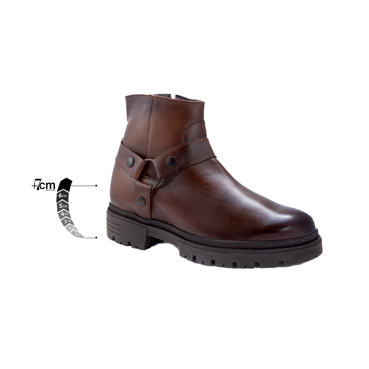 Las botas casuales para hombre Preston Café Claro con plantillas para verse más alto están elaborados con cuero de alta calidad y suela TR (flexible y antideslizante).