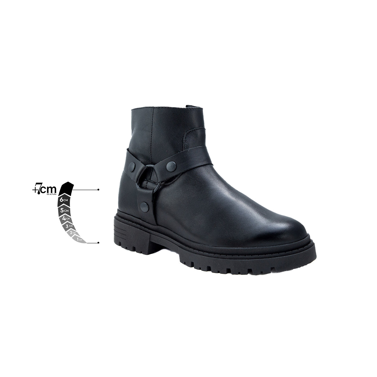 Las botas casuales para hombre Preston Negro con plantillas para verse más alto están elaborados con cuero de alta calidad y suela TR (flexible y antideslizante).