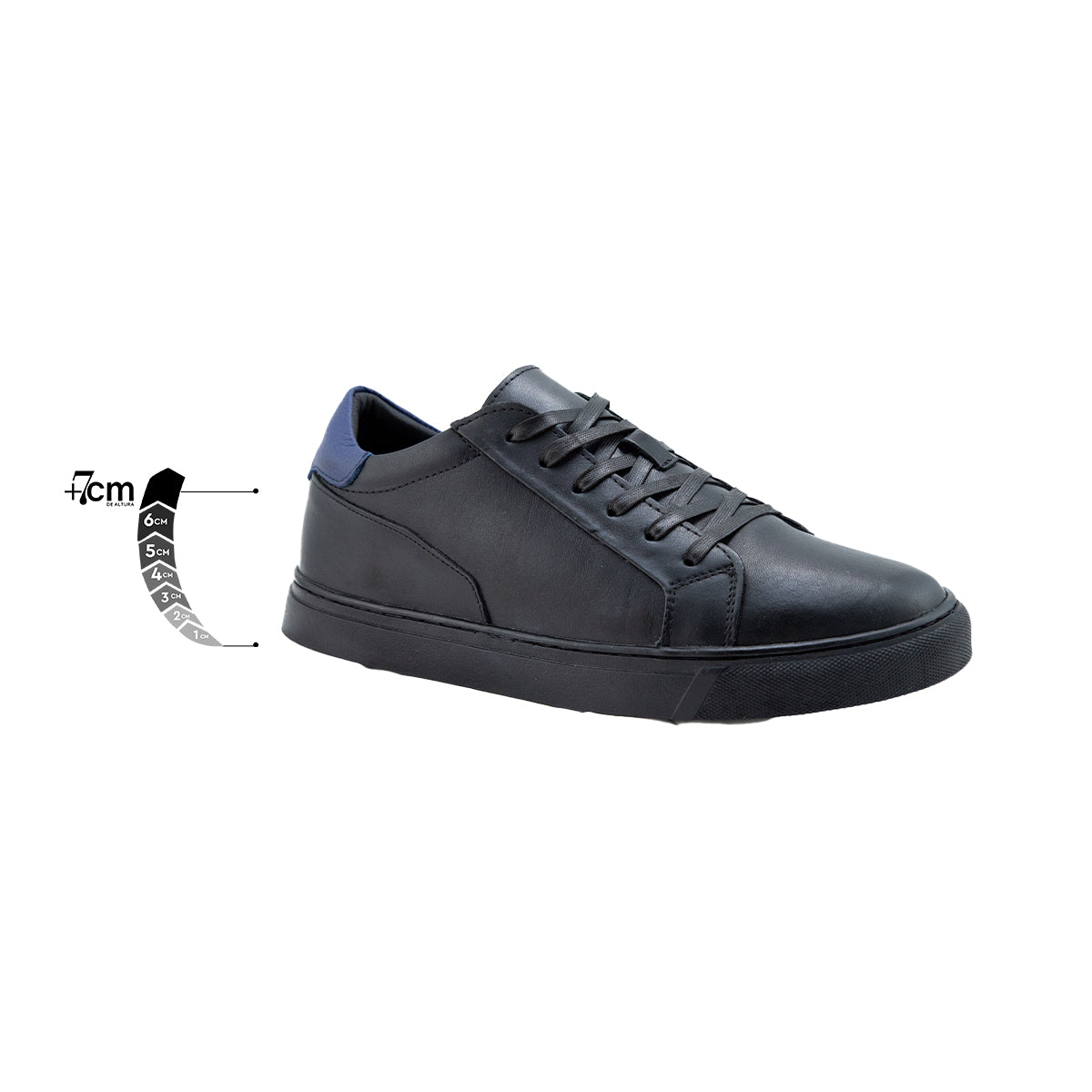 Los tenis casuales para hombre Coast Negro-Azul que te aumentan + 7cms de altura, están elaborados con cuero de alta calidad y suela TR (flexible y antideslizante).